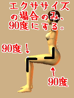 エクササイズを行う場合の正しい座り方は、腰の角度と、膝の角度を90度にすることです。